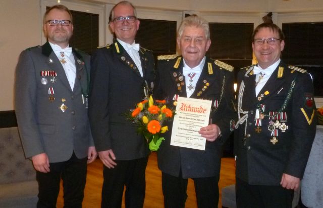 Pfeiffer war bereits in den letzten Jahren als Komiteemitglied engagiert mit eingebunden. Als Würdigung seines steten Engagements wurde Hans-Hinrich Bruns zum Ehren-Kommandeur des Schützenkorps ernannt.